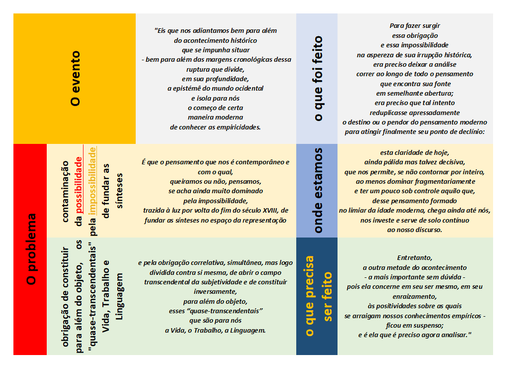 (*) As palavras e as coisas: uma arqueologia das ciências humanas; capítulo VIII – Trabalho, Vida e Linguagem; tópico: I. As novas empiricidades