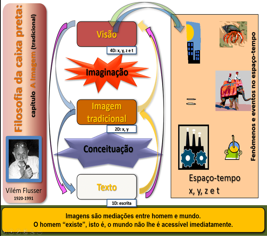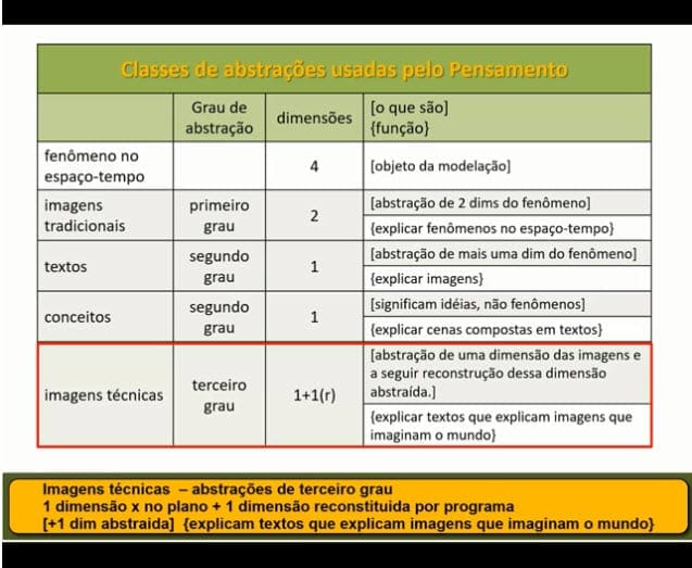 • e as Imagens técnicas, especiais, aquelas imagens produzidas por aparelhos (computadores em destaque); as Imagens técnicas exigem, para seu entendimento, uma Conceituação especial.(*)