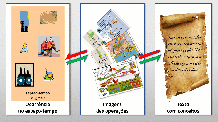Paletas com o conjunto completo de ideias ou elementos de imagem necessários para a formulação das respectivas imagens das ocorrências no espaço-tempo x, y, z e t ; incluindo relacionamentos entre esses elementos de imagem.(*)