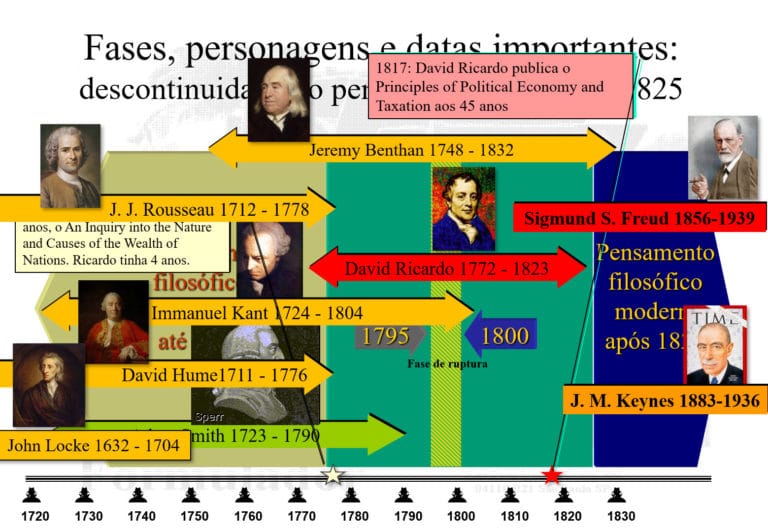 sob o pensamento moderno, o de depois de 1825 (seta vermelha)