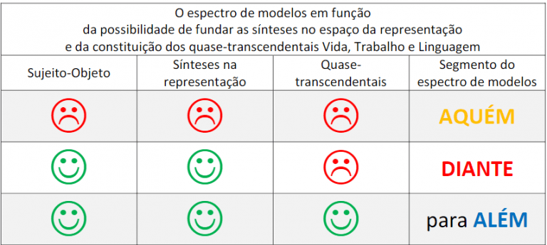 de fundar as sínteses da representação da empiricidade objeto, no espaço da representação’; com duas regiões em um espectro de modelos: