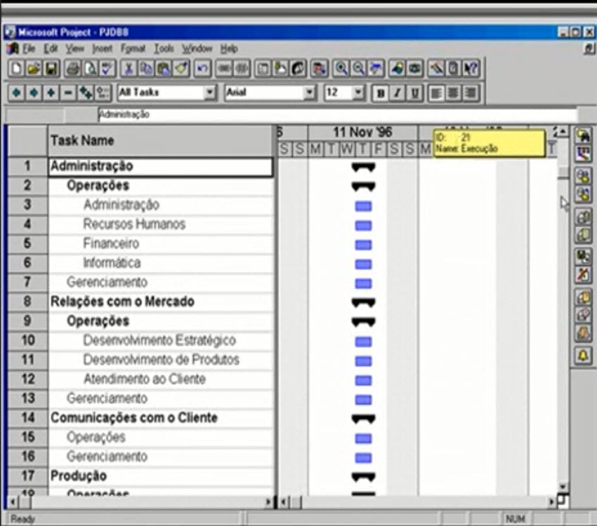 Esse modelo relacional tem como elemento central Projeto, (atividade, tasks), o mesmo modelo central dos sistemas baseados na estrutura Input-Output.