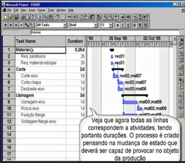 - tem uma unidade lógica que reúne as proposições formuladas com esses elementos, uma para cada componente do objeto análogo, ou cada linha da coleção de objetos análogos cuja operação de produção está sendo criada (a estrutura analítica O QUE); faz isso sobre o mesmo repositório de informações em banco de dados de que o Microsoft Project 4.0 dispõe.